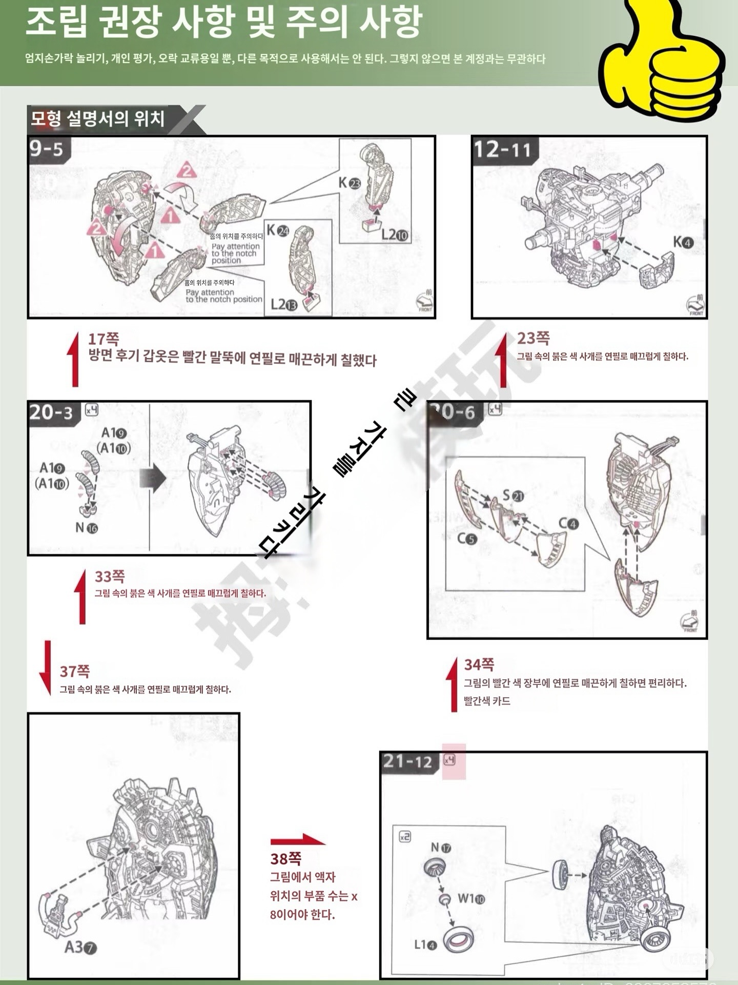 솔로몬 크샤트리아 조립 유의사항
